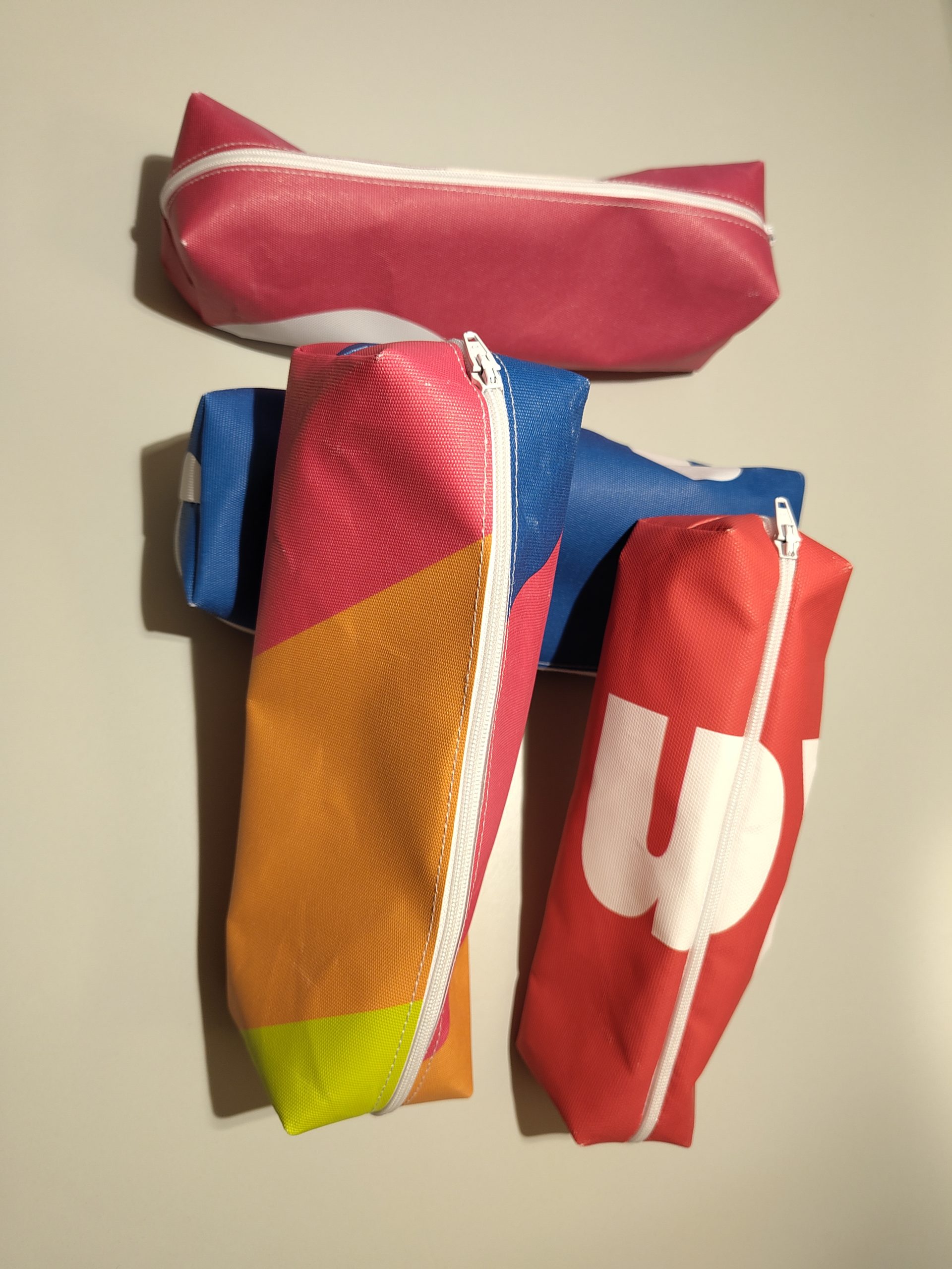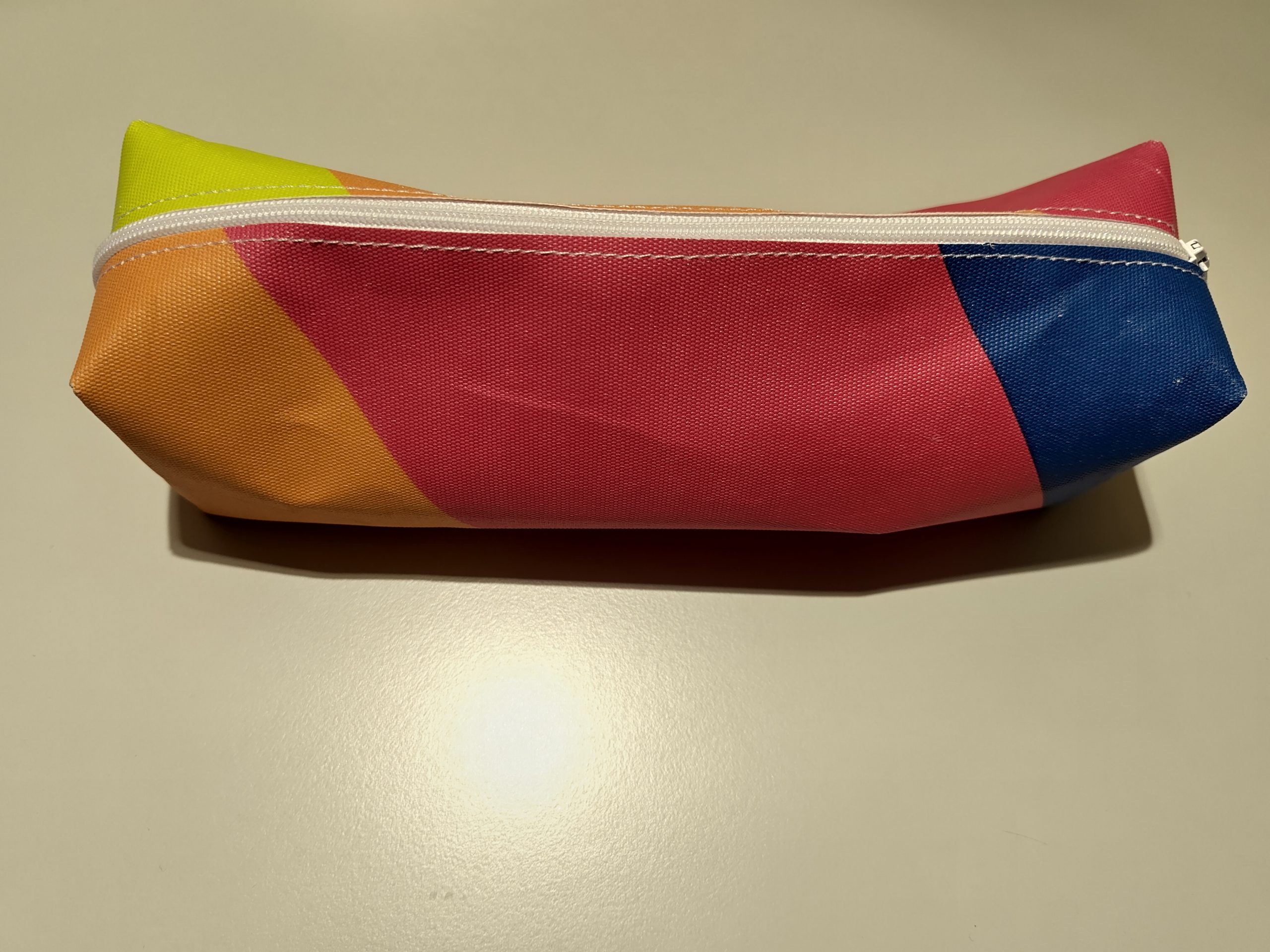 Dieses Mäppchen (Federtasche, Schlampermäppchen) ist ein echter Hingucker und ein weiteres Einzelstück gefertigt aus der LKW-Plane des CSD-Trucks, mit dem Domino's 2024 auf dem CSD in Köln vertreten war. Das Täschchen bietet ausreichend Platz für Stifte, USB-Sticks oder andere Kleinigkeiten. Das Material ist wasserfest und deshalb sehr robust und schütze den Inhalt vor Nässe.